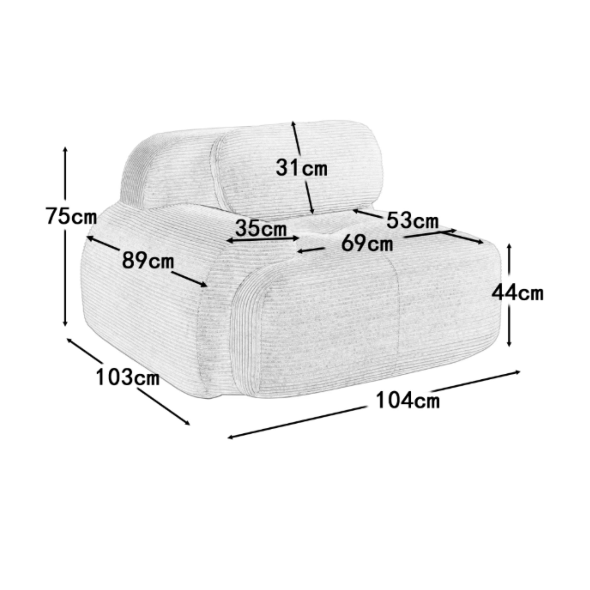 Un canapé modulaire en velours côtelé ultra doux, livré sans assemblage, à combiner librement pour créer un espace salon confortable, stable et élégant.