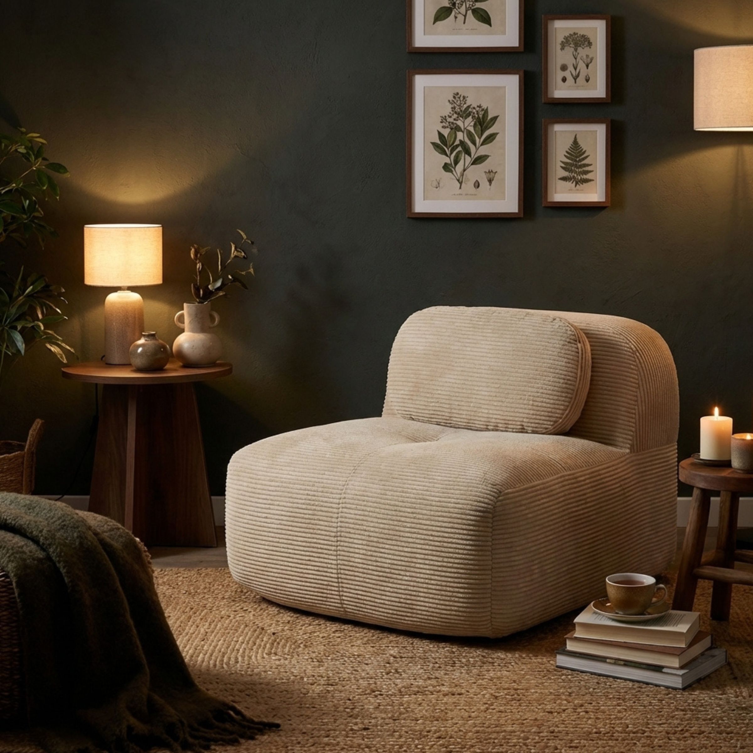 Pensé pour s’adapter à tous les intérieurs, ce canapé modulaire en velours côtelé offre une liberté totale d’agencement. Sa conception minimaliste permet de composer votre salon selon vos envies : canapé droit, angle cosy ou assise indépendante, chaque module trouve naturellement sa place.