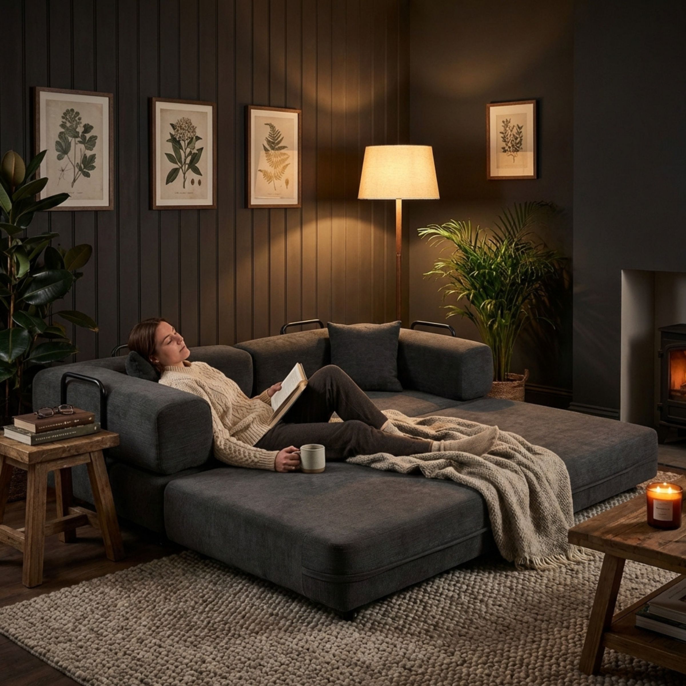 Son rembourrage épais de 20 cm en mousse haute densité procure un soutien ferme et enveloppant, aussi agréable en position assise qu’allongée. Les larges accoudoirs renforcent le confort et apportent une sensation de maintien appréciable au quotidien.
