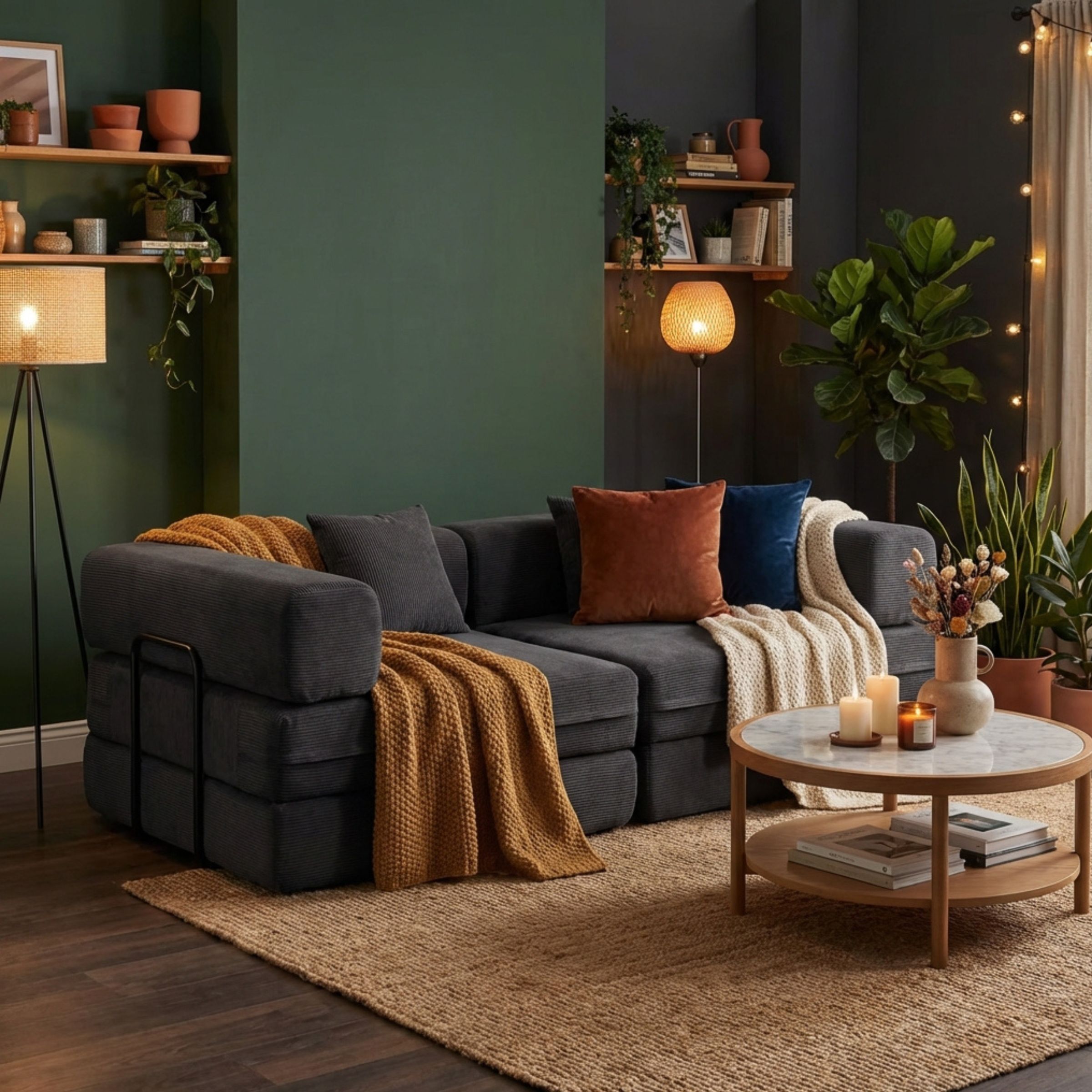 Pense à l’associer à une table basse compacte pour optimiser l’espace