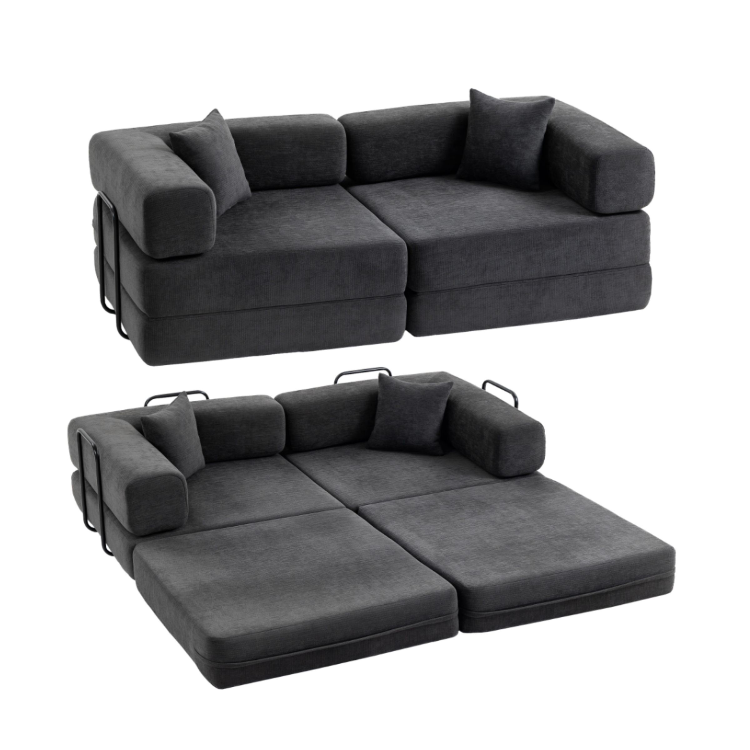 Pensé pour la simplicité, ce canapé-lit est livré prêt à l’emploi, sans aucun assemblage, et est accompagné de deux coussins décoratifs assortis pour une finition soignée.