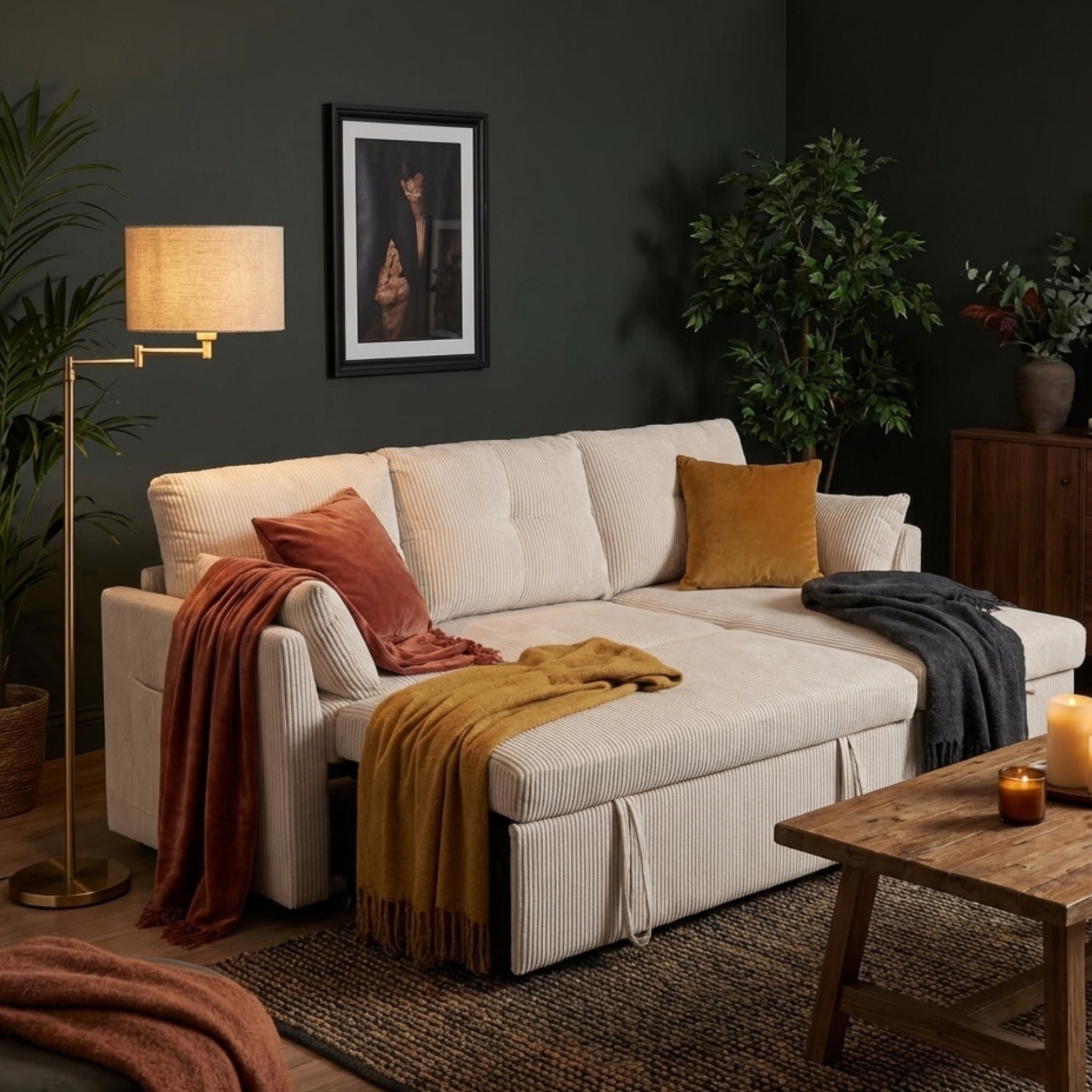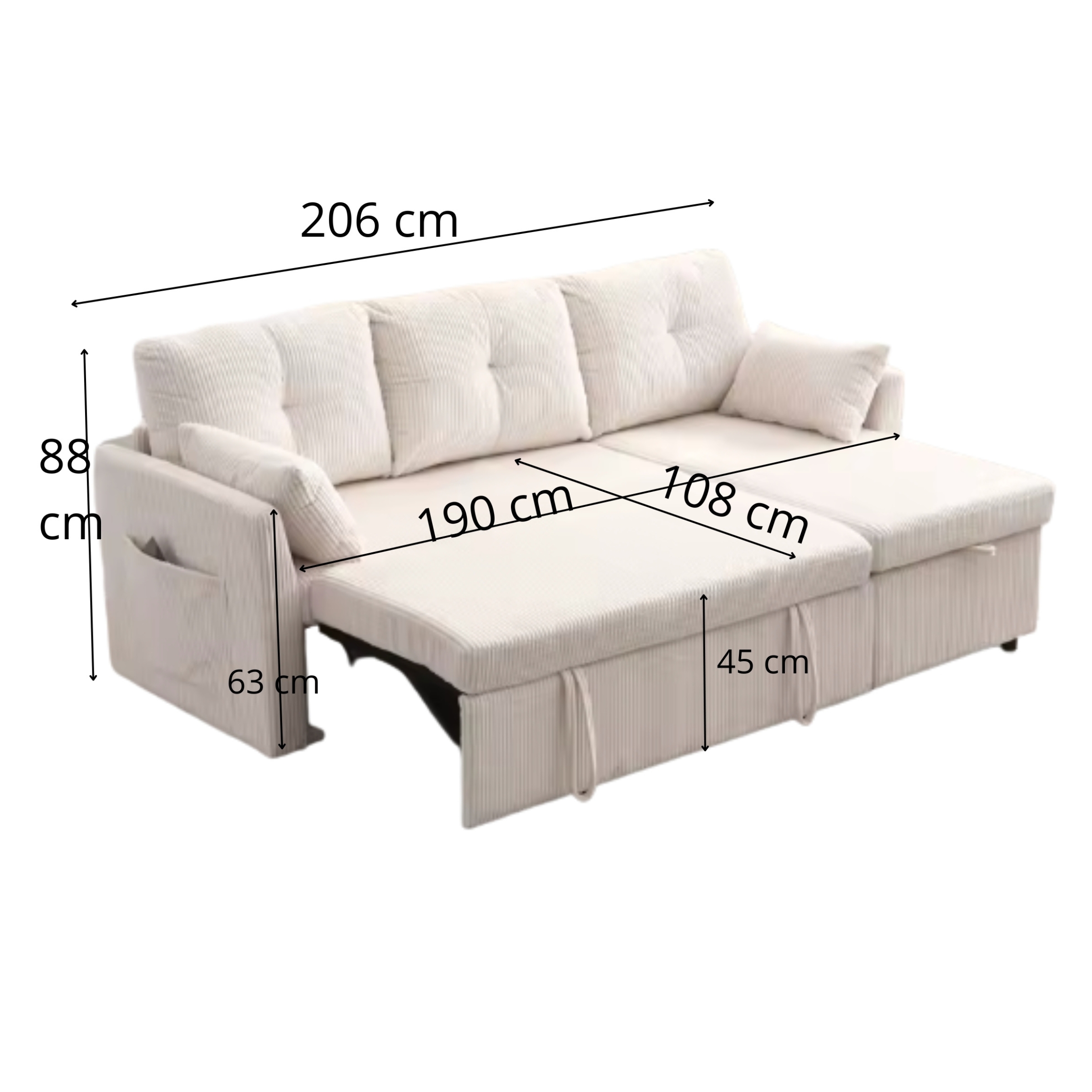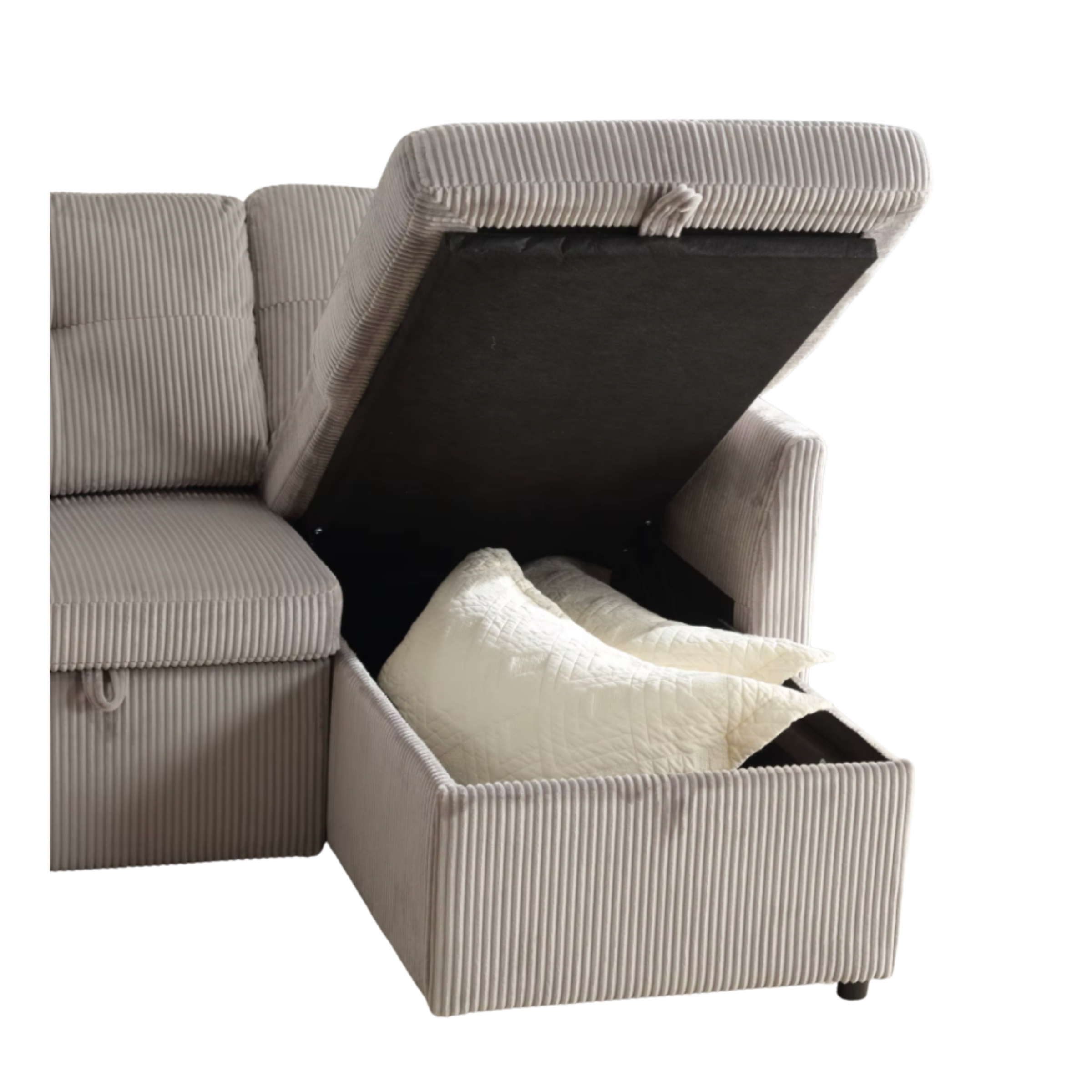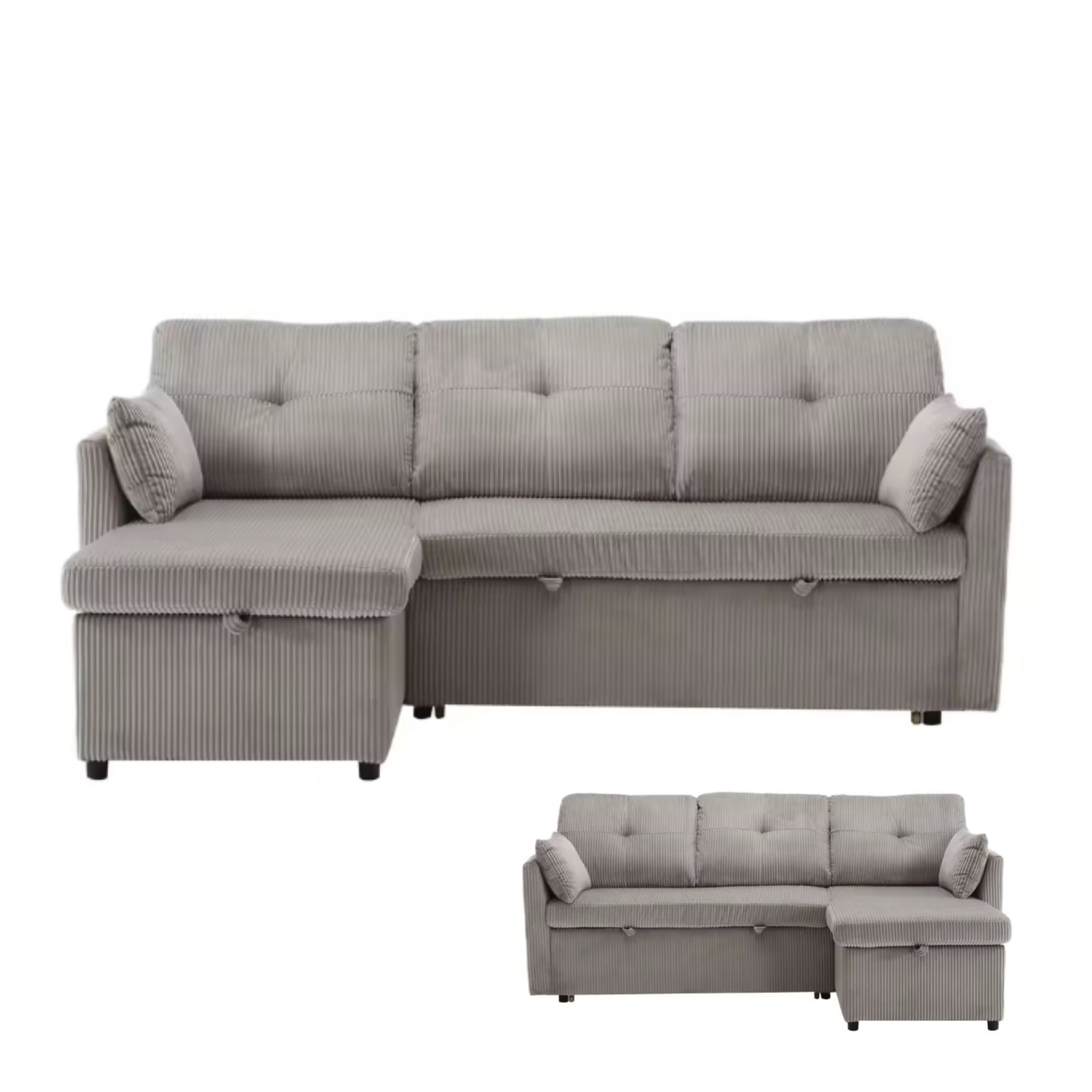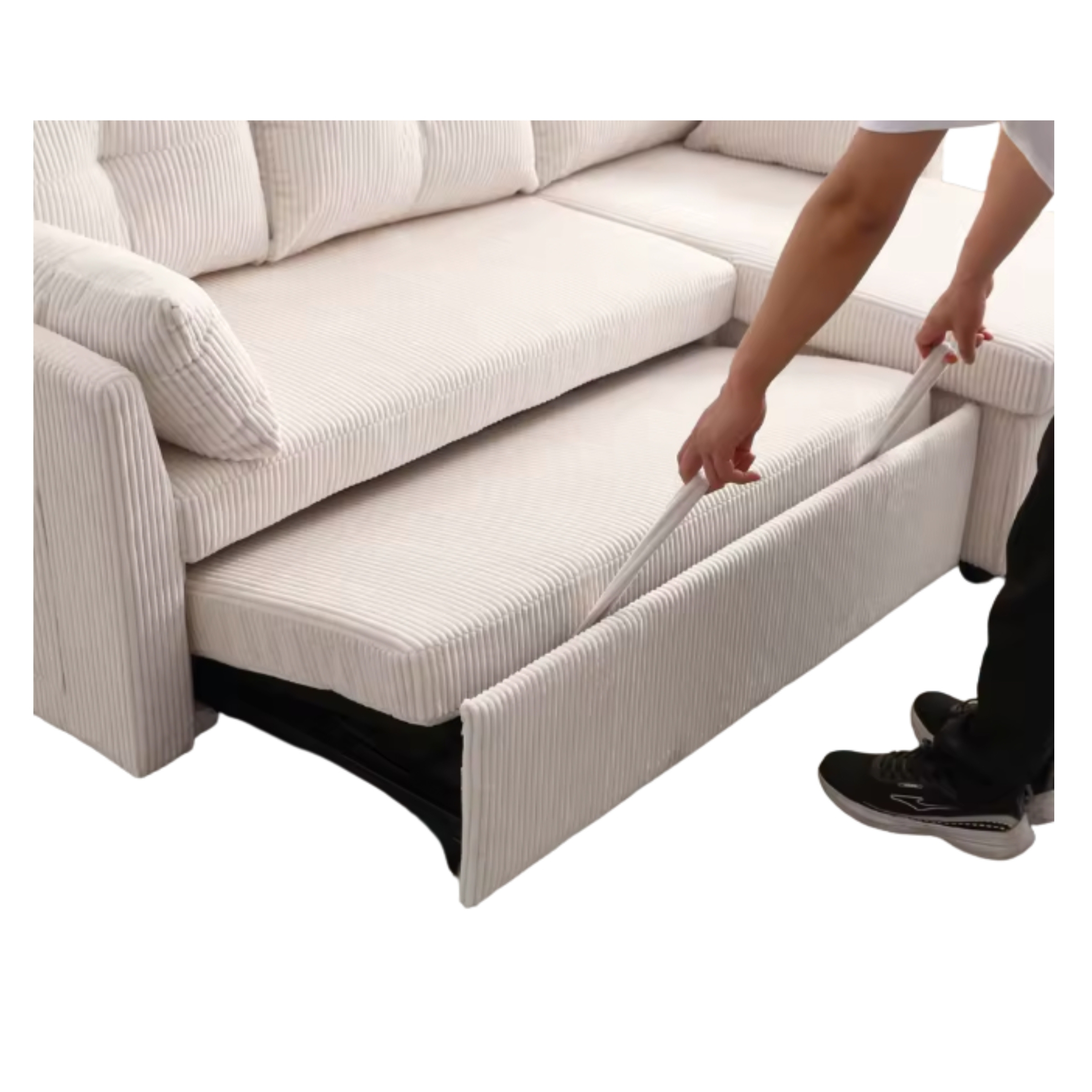 Le revêtement en velours côtelé de qualité supérieure offre un toucher doux, une bonne respirabilité et une durabilité adaptée à un usage quotidien. Grâce à son mécanisme de conversion simple, le canapé se transforme en lit en quelques étapes, idéal pour recevoir des invités ou profiter d’une sieste confortable.