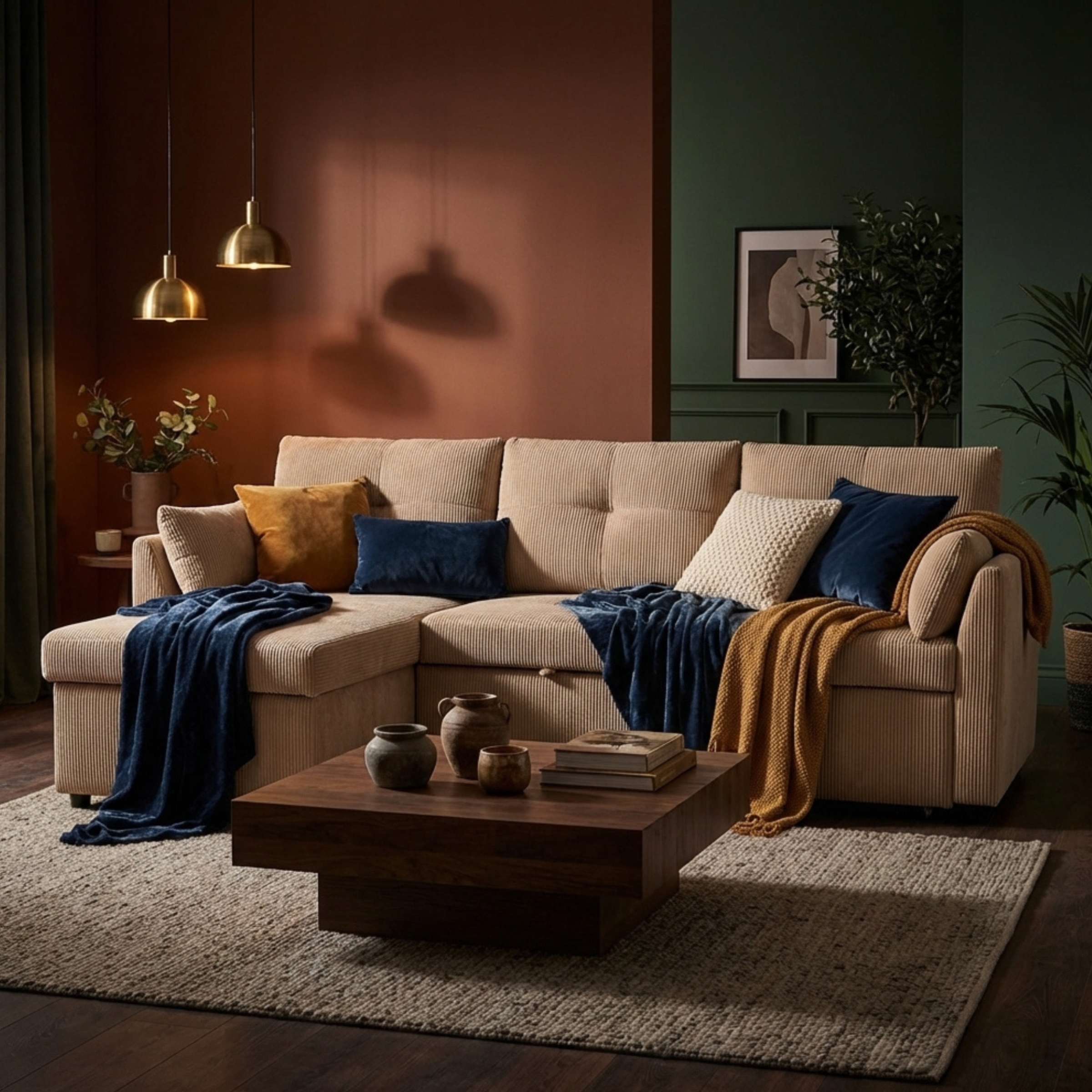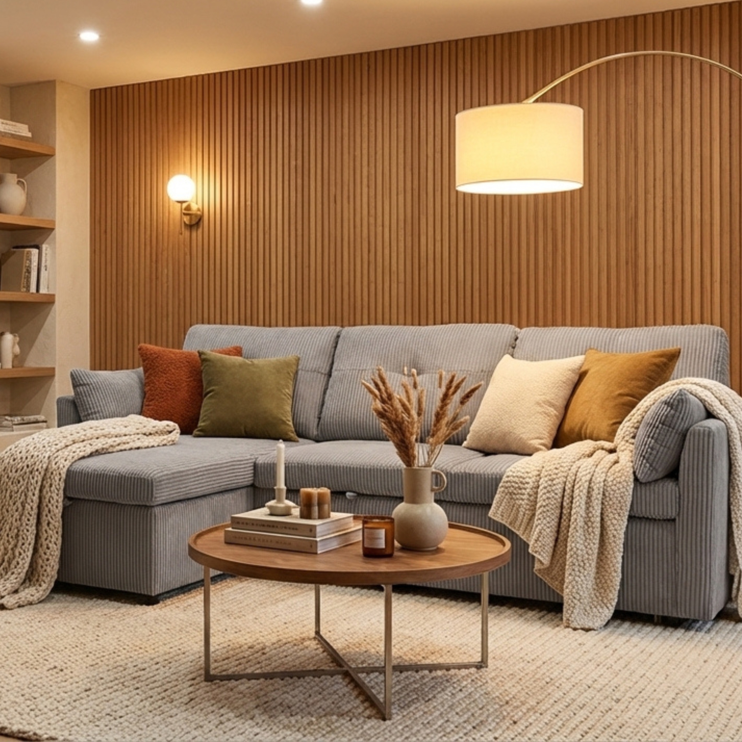 • Ajoutez un plaid texturé ou un tapis doux pour renforcer l’ambiance cosy.