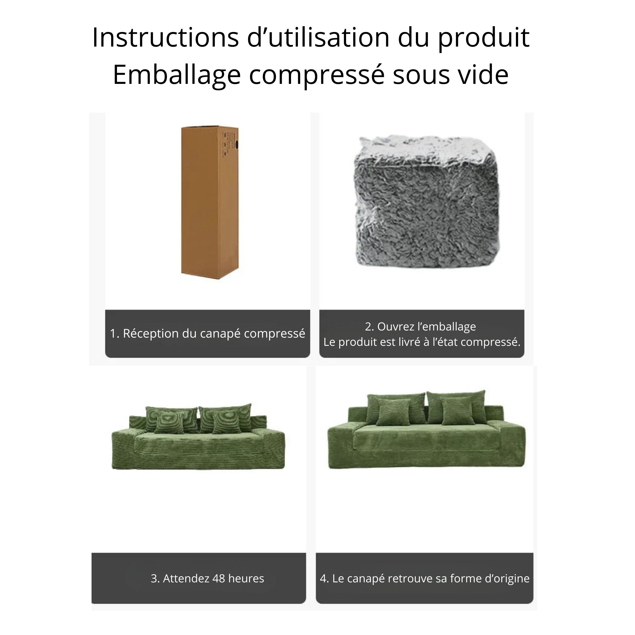 Un canapé-lit compressé sans montage, livré sous vide et prêt à l’emploi en 48 h.