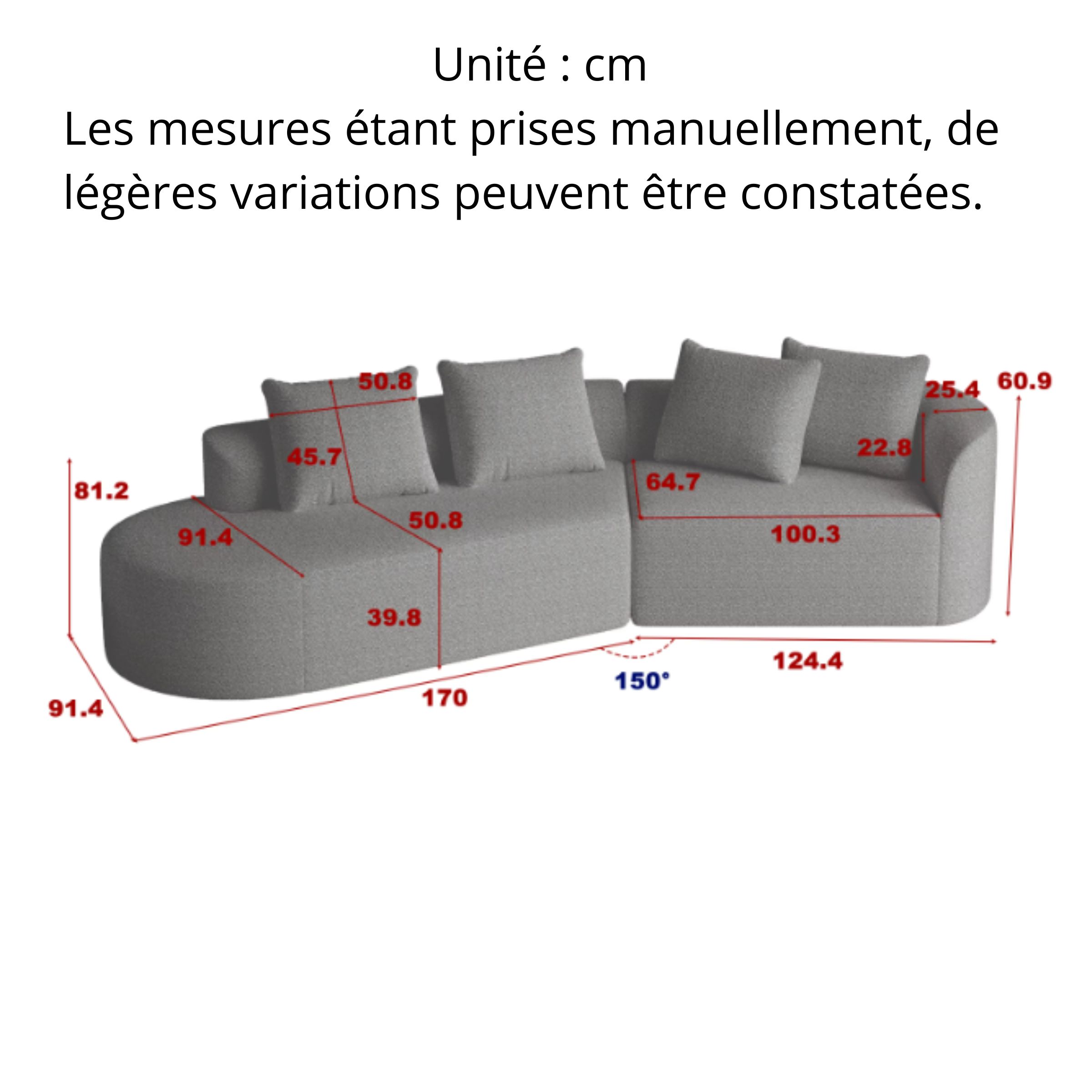 (Dimensions exprimées en cm – mesures manuelles, légères variations possibles)