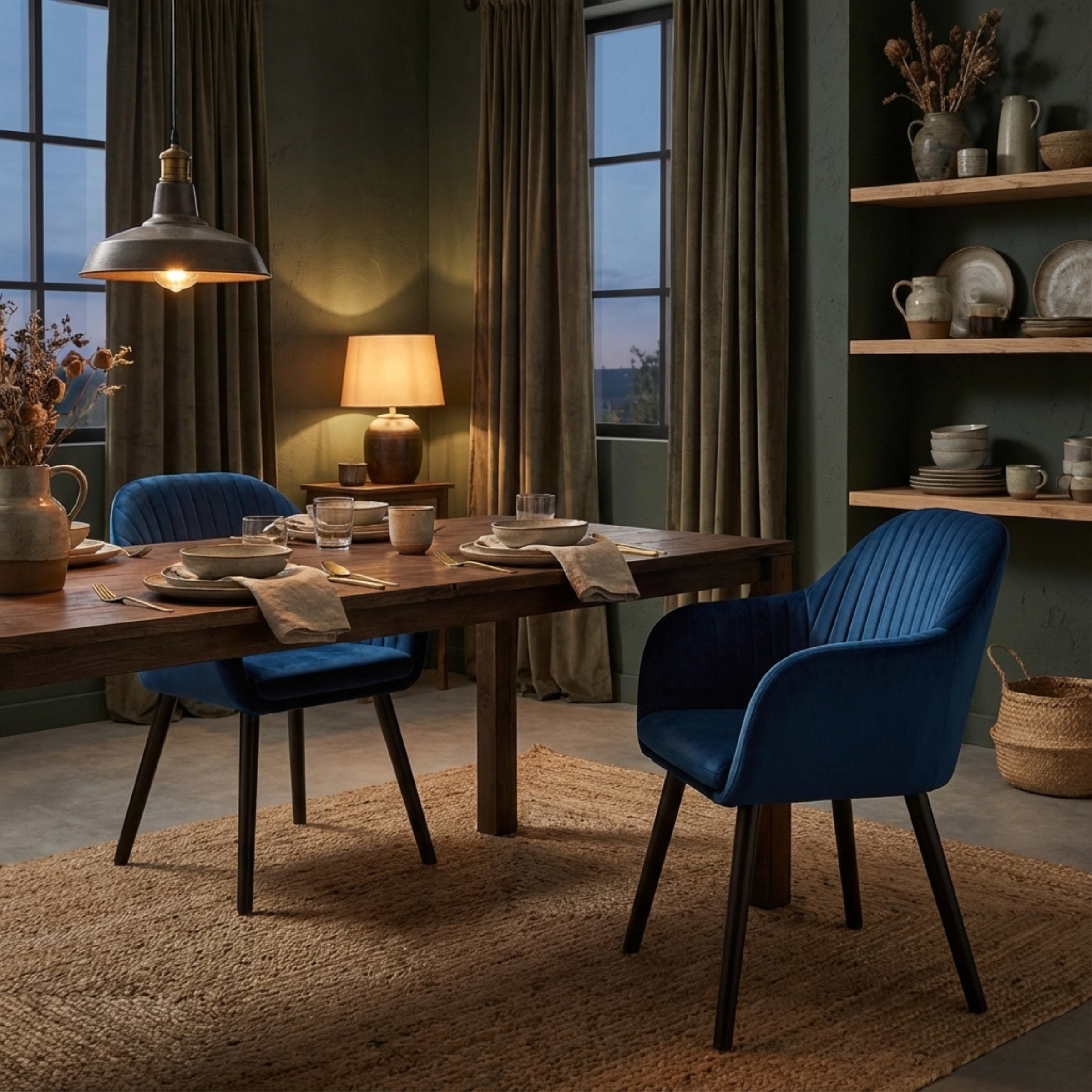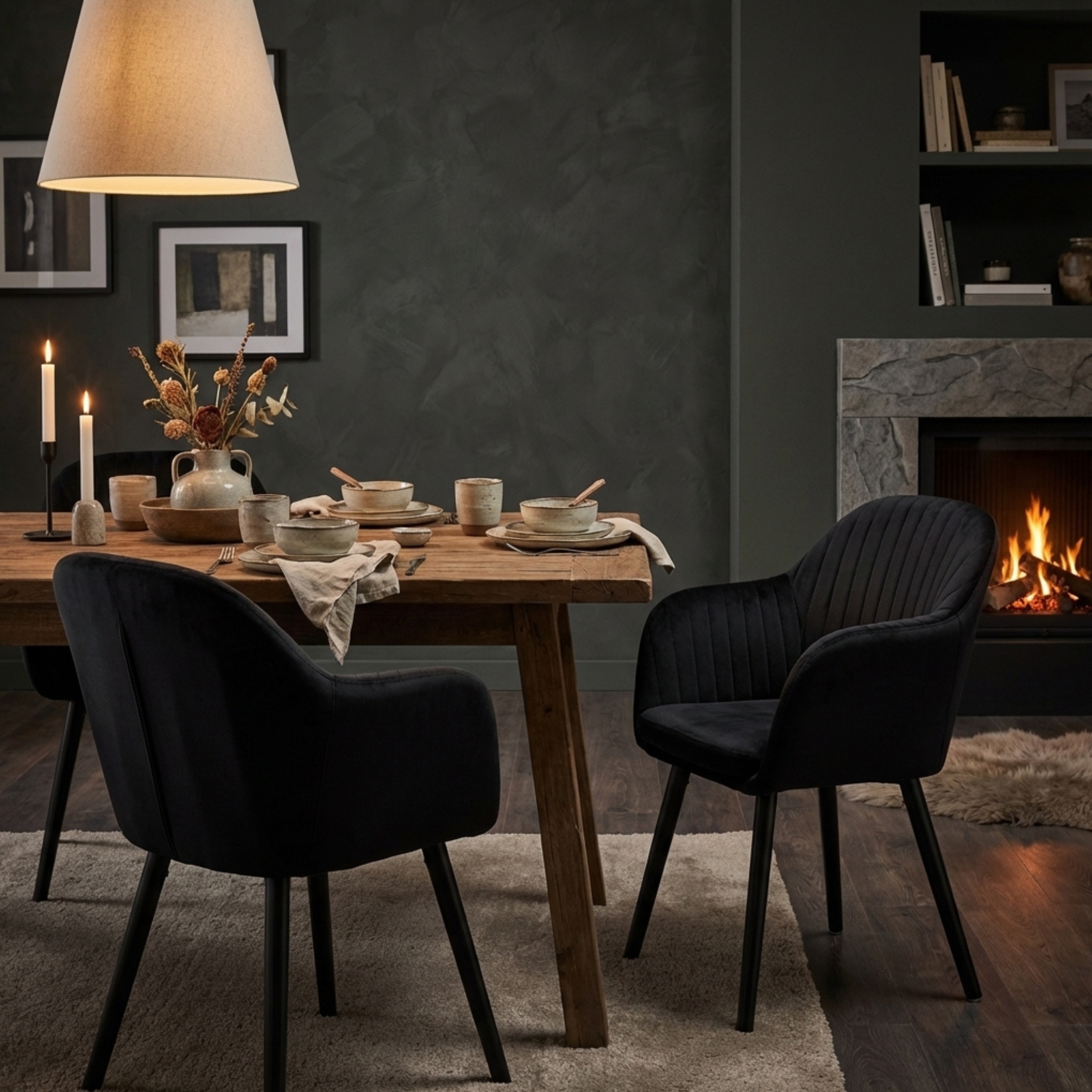Un duo de chaises scandinaves en velours, confortables et élégantes, parfaites pour la salle à manger, la cuisine ou un coin lecture stylé. Assise moelleuse, dossier incurvé, pieds en bois massif : un essentiel pour une déco moderne et chaleureuse.