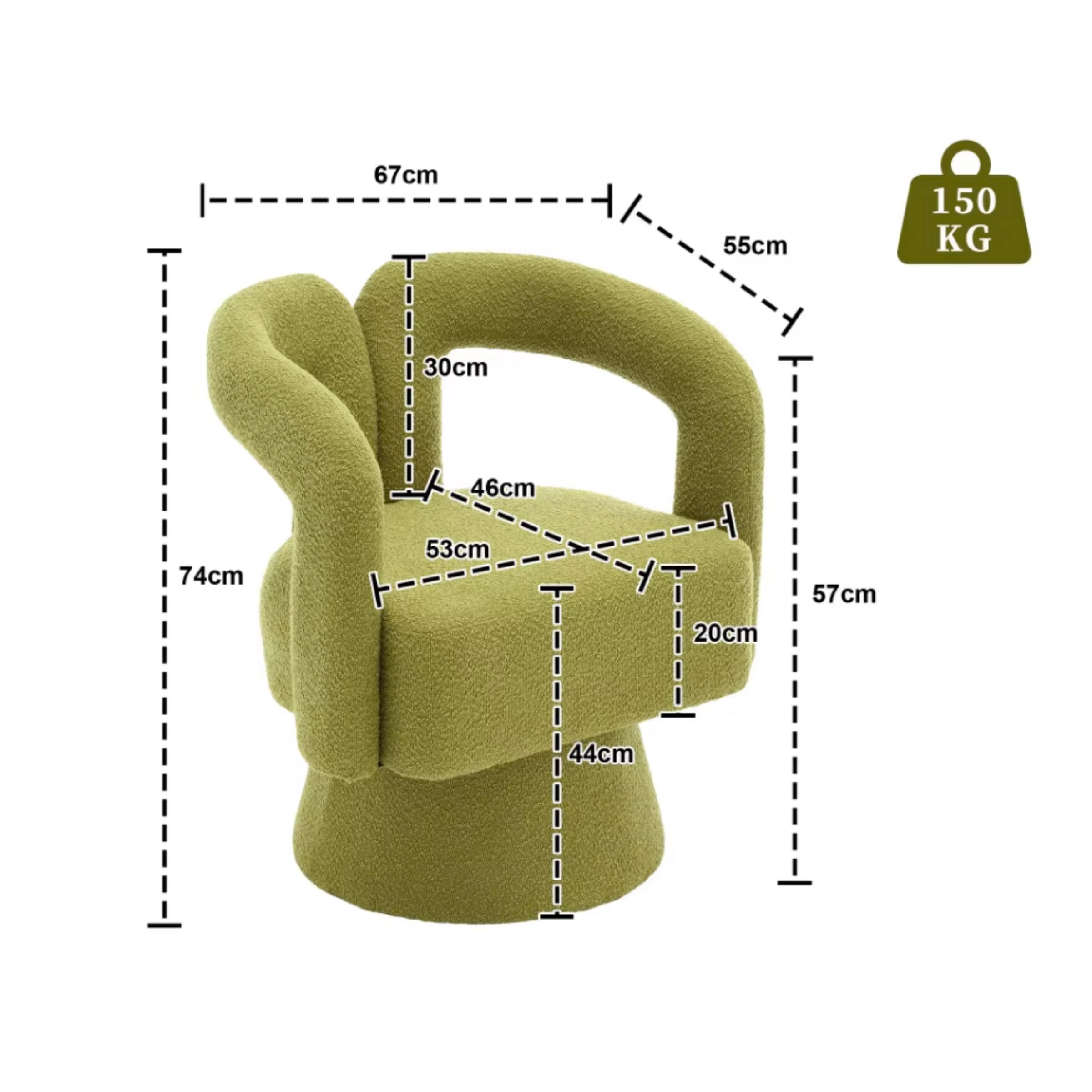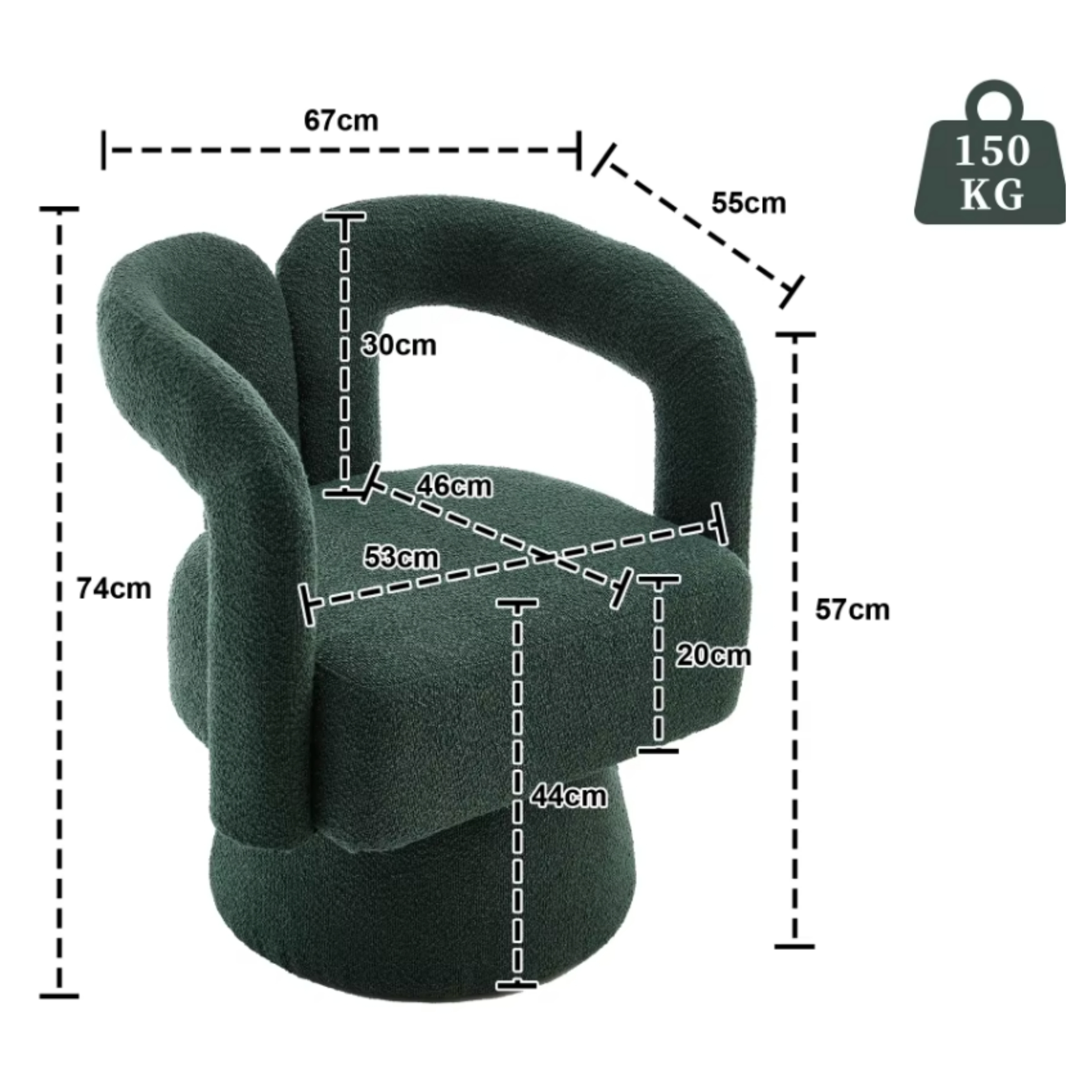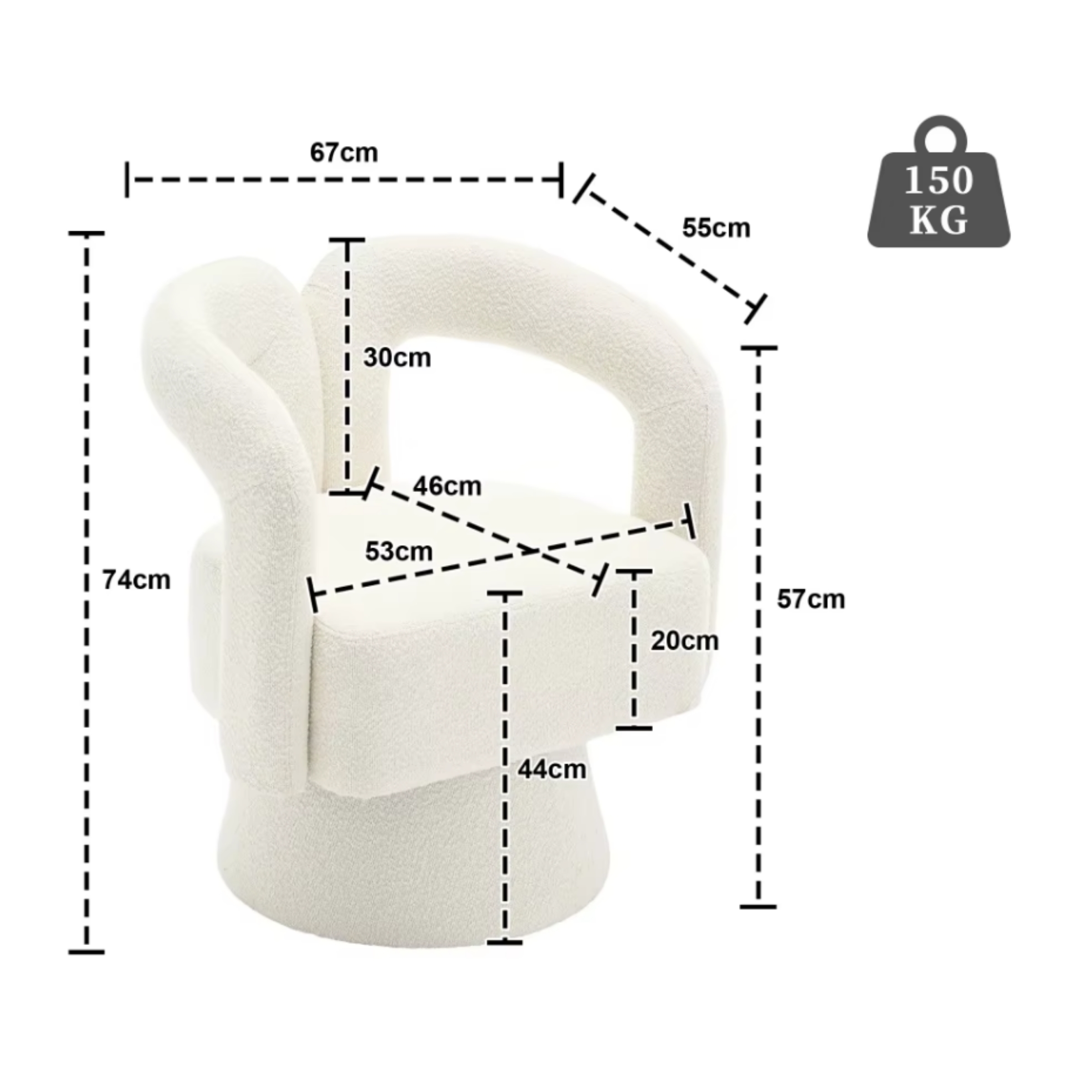 Offrez-vous une expérience de confort ultime avec ce fauteuil pivotant 360° en tissu bouclé, conçu pour créer un espace cosy, moderne et élégant dans n’importe quelle pièce. Grâce à ses lignes arrondies et son dossier creux, il combine parfaitement design contemporain et ergonomie.