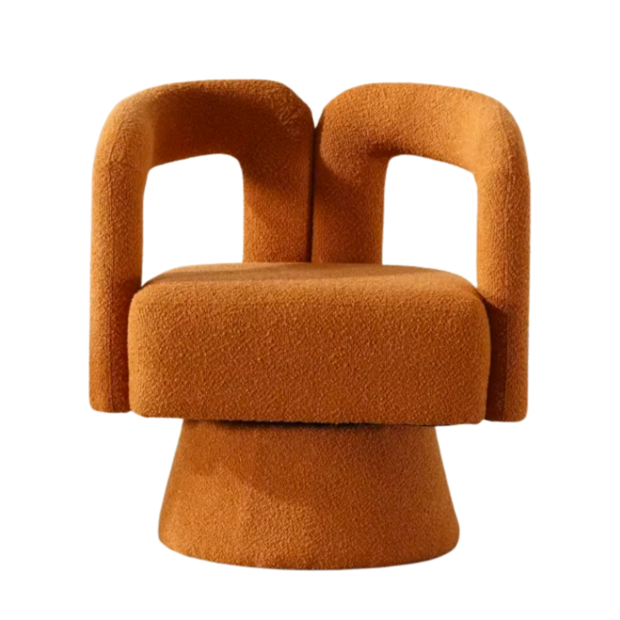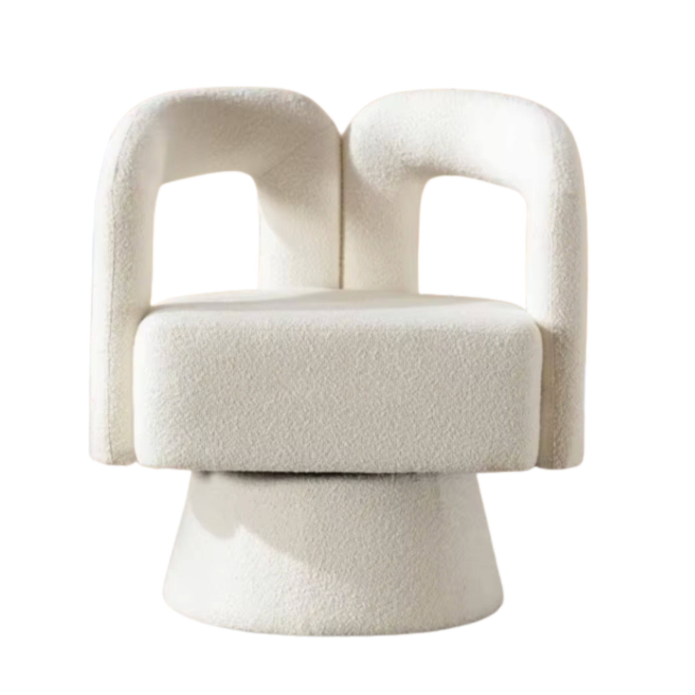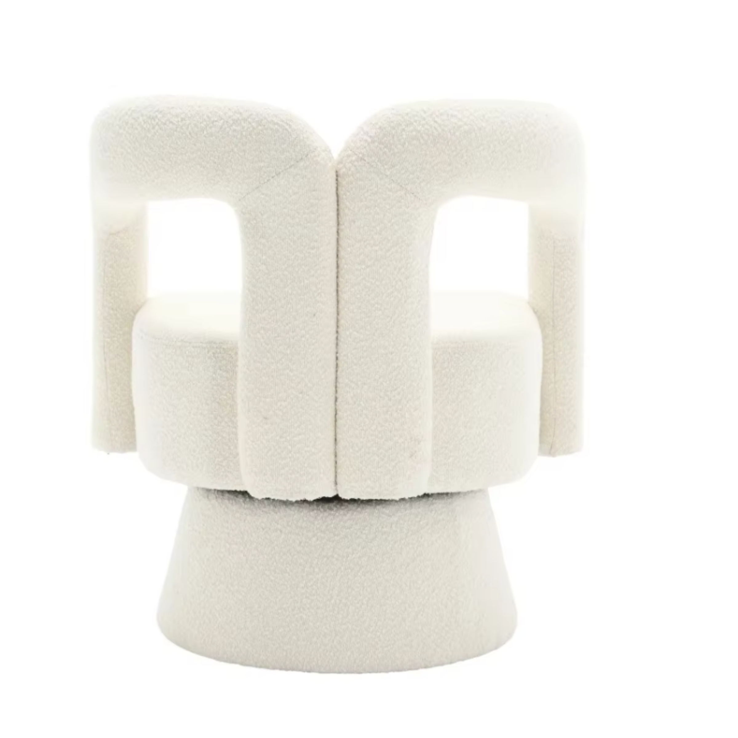 Parce qu’il combine design sculptural, douceur extrême et fonctionnalité moderne. Son tissu bouclé tendance, sa rotation 360° et son assise ultra moelleuse en font un fauteuil à la fois esthétique et incroyablement confortable. Il transforme instantanément un espace en coin cosy chic, digne des plus belles inspirations déco.