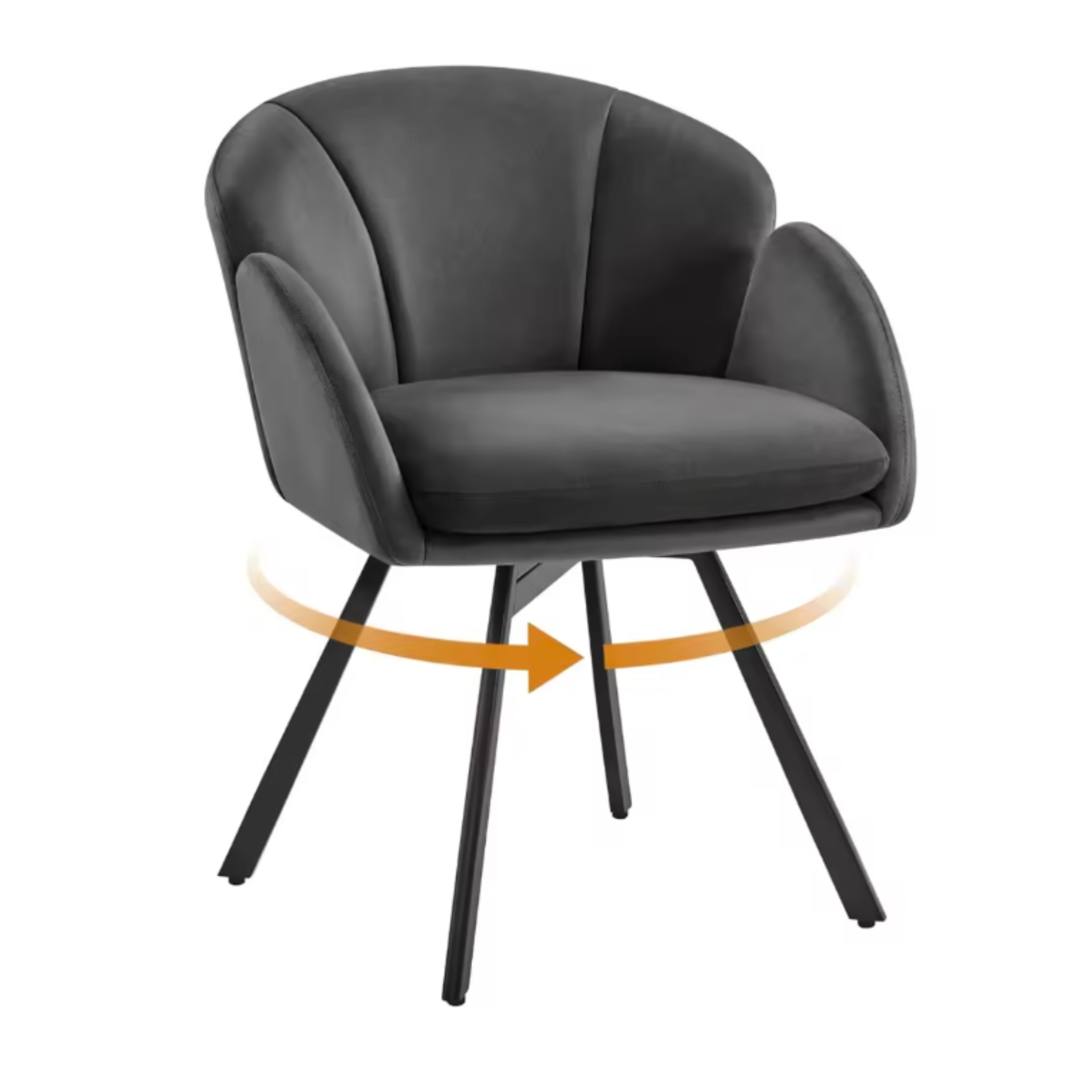 Chaise en velours design fleur, pivotante 360°, coussin amovible, mousse haute densité et pieds métal croisés. Confort idéale pour salon, coiffeuse, bureau ou coin lecture.