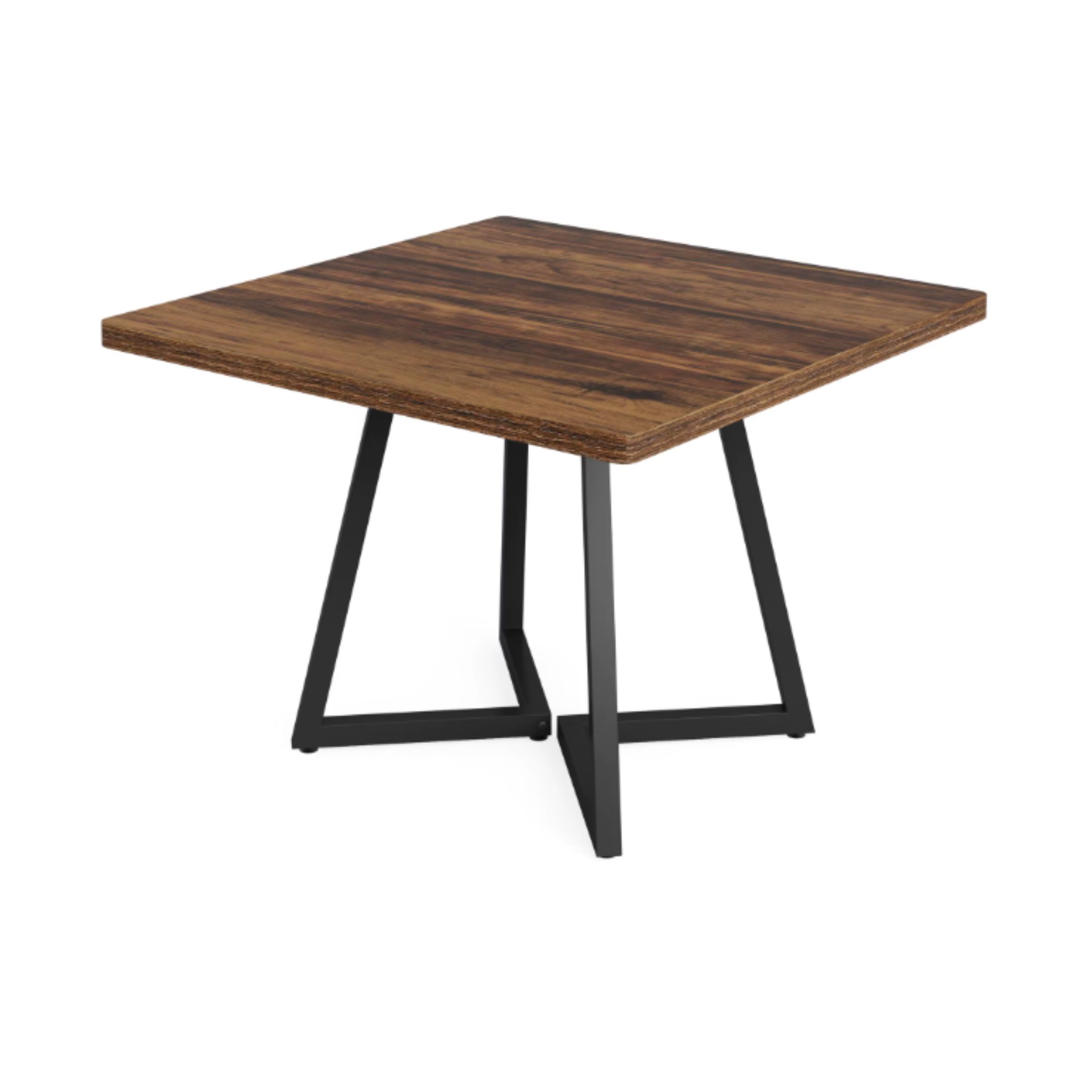 Table à manger carrée au design rustique-industriel, idéale pour 2 à 4 personnes, avec plateau effet bois vintage et structure métallique robuste. Parfaite pour les petits espaces modernes et chaleureux.