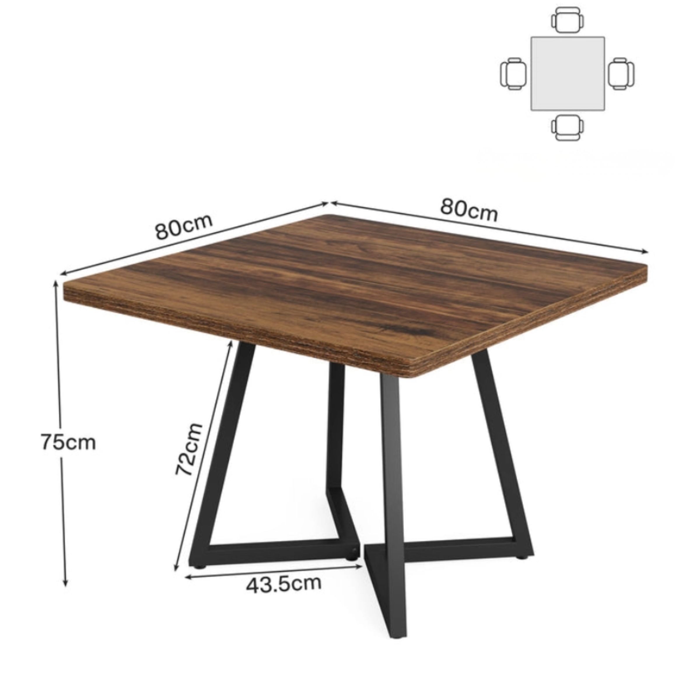 Avec ses dimensions compactes, elle accueille confortablement jusqu’à 4 personnes, ce qui en fait une solution idéale pour les petites salles à manger, cuisines, studios ou coins repas. Son plateau large et stable offre un espace suffisant pour les repas du quotidien comme pour les moments conviviaux.